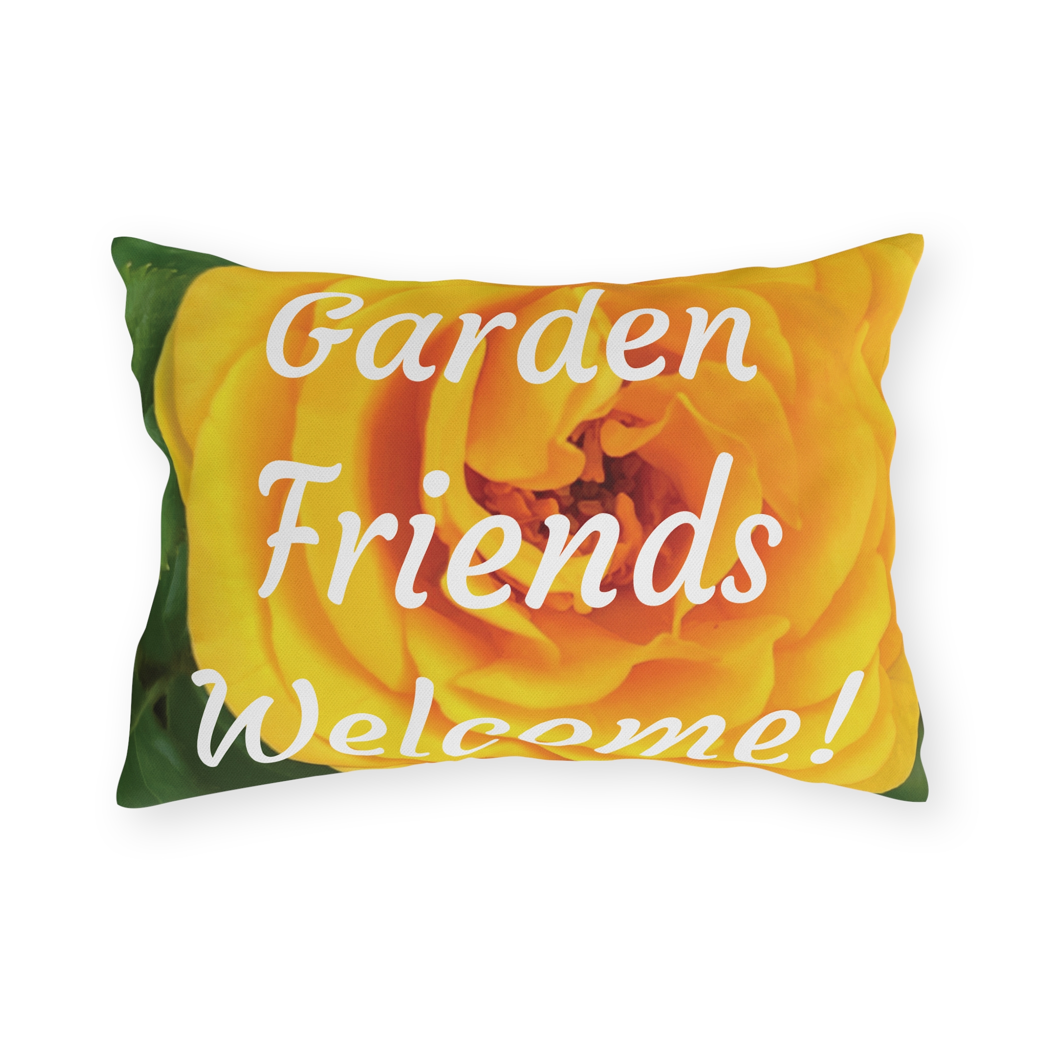 Inspirational Message: One side of each pillow is adorned with the warm greeting, “Garden Friends Welcome,” inviting beauty and company into your outdoor spaces.